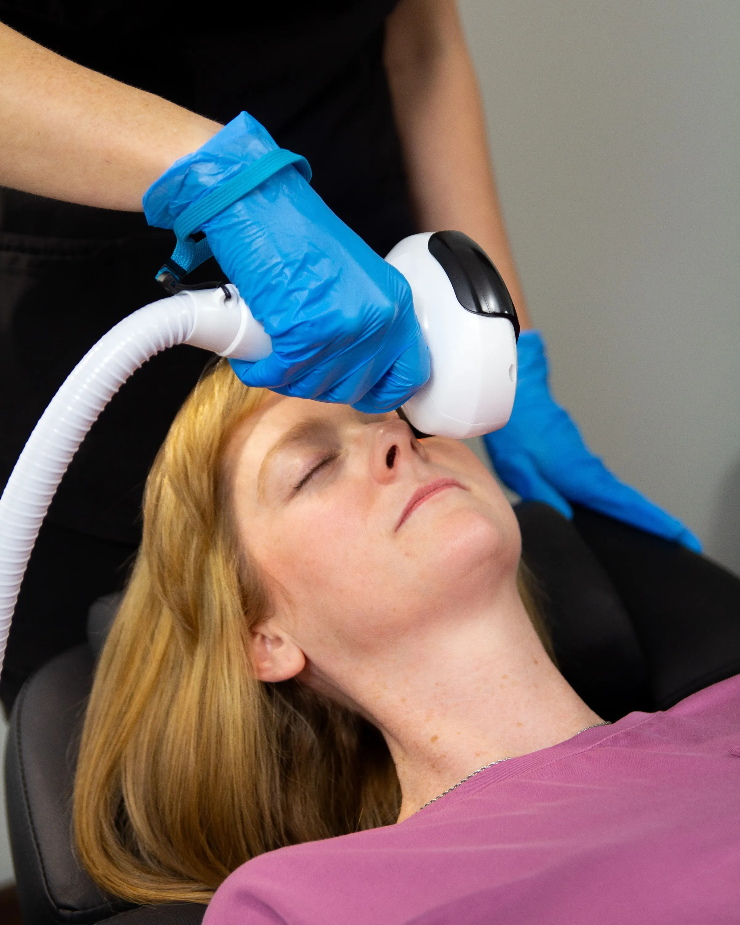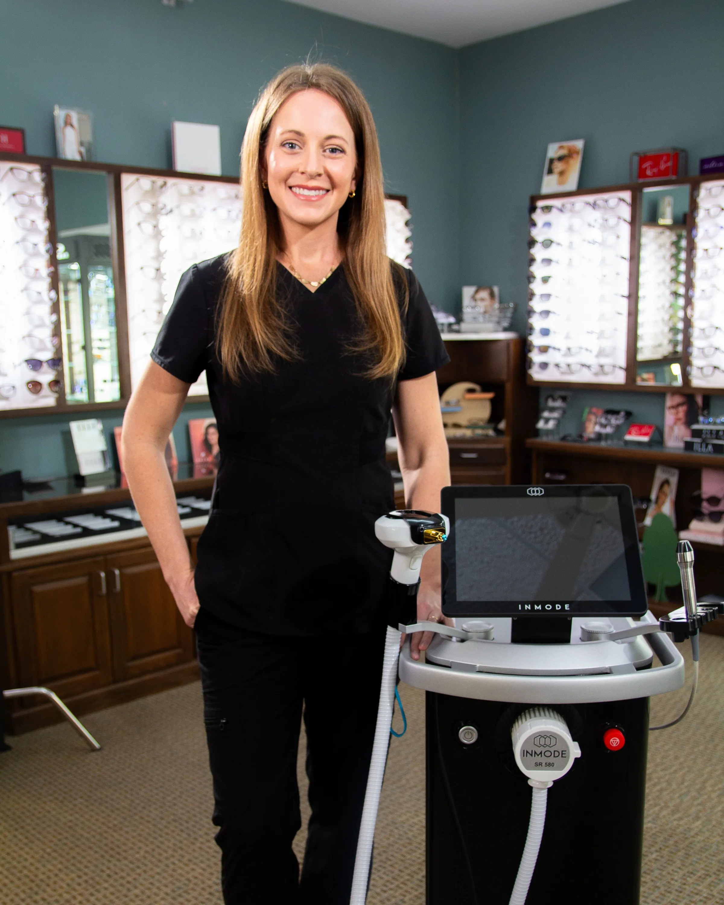1. Intense Pulsed Light (IPL) Therapy: Intense Pulse Light (IPL) Therapy is another way to target the meibomian gland dysfunction that can contribute to dry eyes. With this treatment, a laser wand is used to employ intense flashes of light that work to heat the meibomian glands to both help release oil and address inflammation in the surrounding tissues. This treatment takes about 10 minutes in our office and can be done in conjunction with an RF treatment to get the most benefit. This treatment has an added aesthetic benefit of also treating rosacea, ocular rosacea, and dark spots. When using this treatment in our office, you have the option of adding on a facial treatment to get the most out of the aesthetic benefits. Click HERE to learn more!